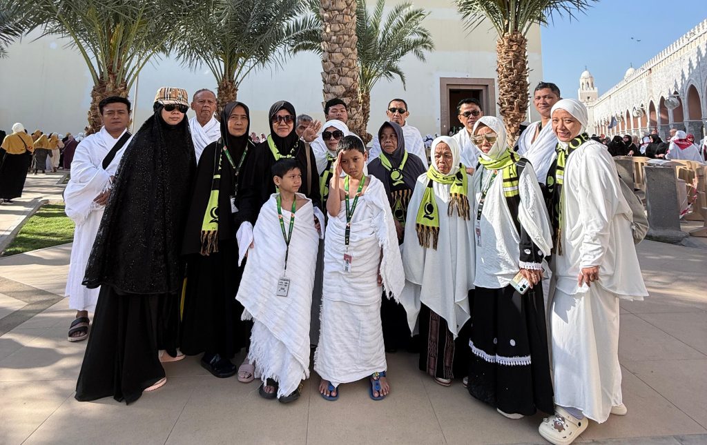 Jamaah Alindra Haqeem berkumpul di Terminal 3 – Bandara Internasional Soekarno Hatta, 4 Jam sebelum keberangkatan untuk penerbangan menuju ke Dubai.